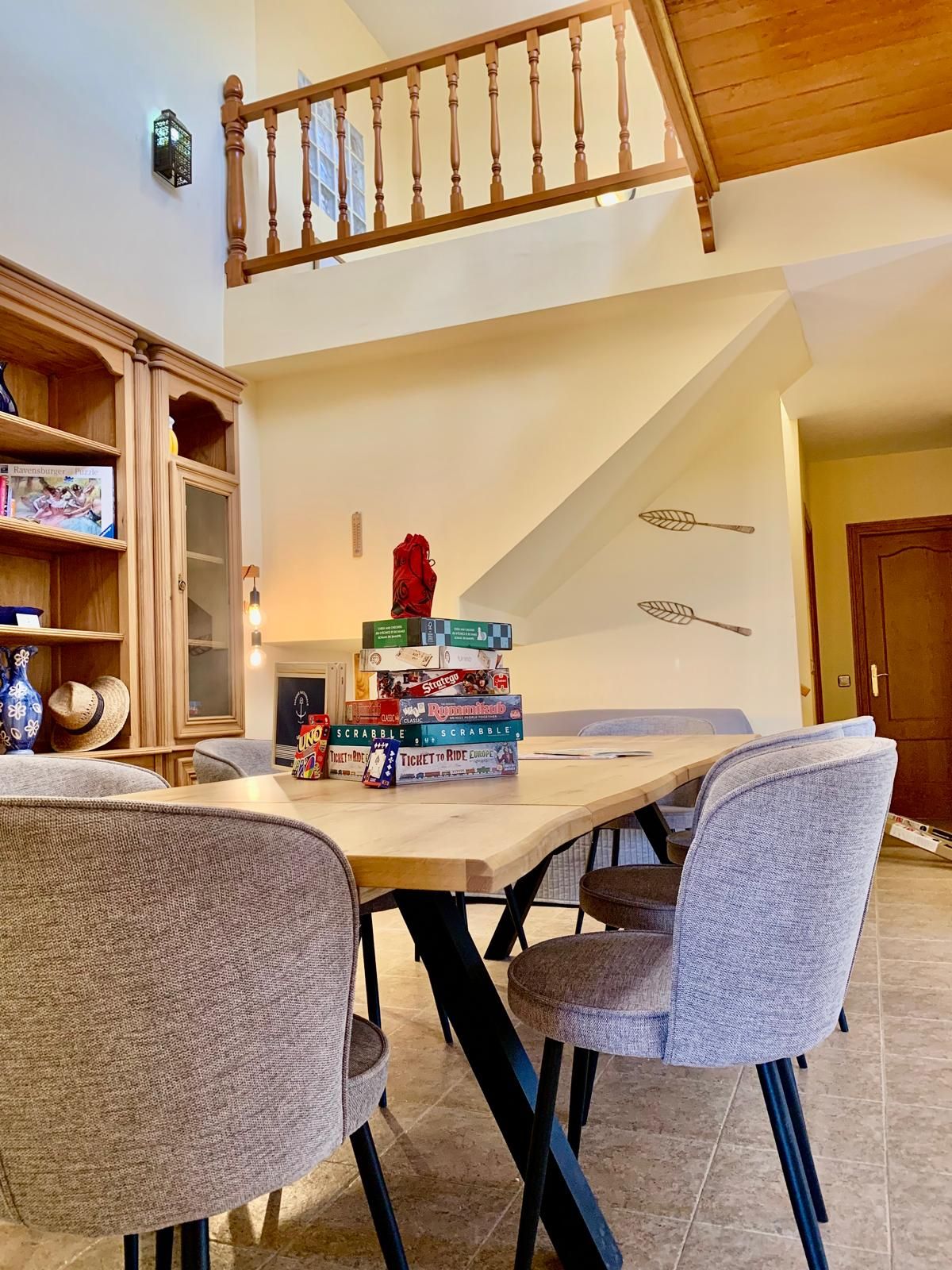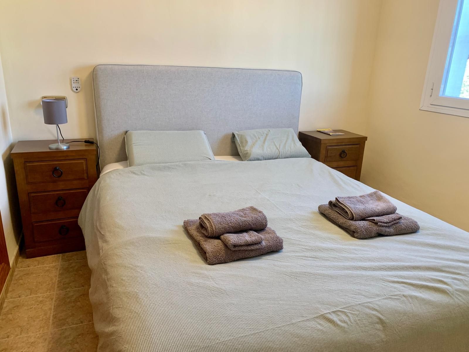 Op de begane grond is er één slaapkamer (1 dubbel), badkamer, een zeer ruime woonkamer met eventueel extra slaapzetel, sofa, open haard, TV en snelle wifi en een grote keuken. Buiten zijn er twee patio's en extra terras en een privé zwembad van 8 op 4 meter.